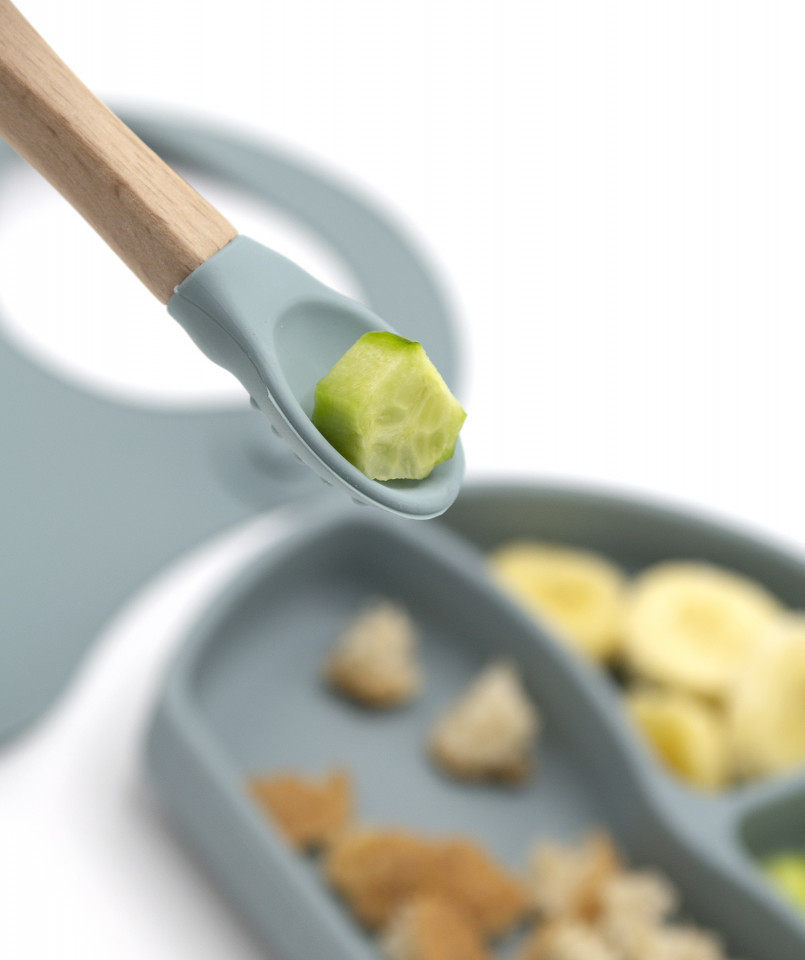 Set diversificare 4 piese din silicon BabyJem Sage este creat pentru părinții care vor veselă practică, ușor de curățat și sigură pentru cei mici. Forma semi-rotundă a farfuriei oferă acces mai bun la mâncare și susține primele încercări de auto-hrănire.